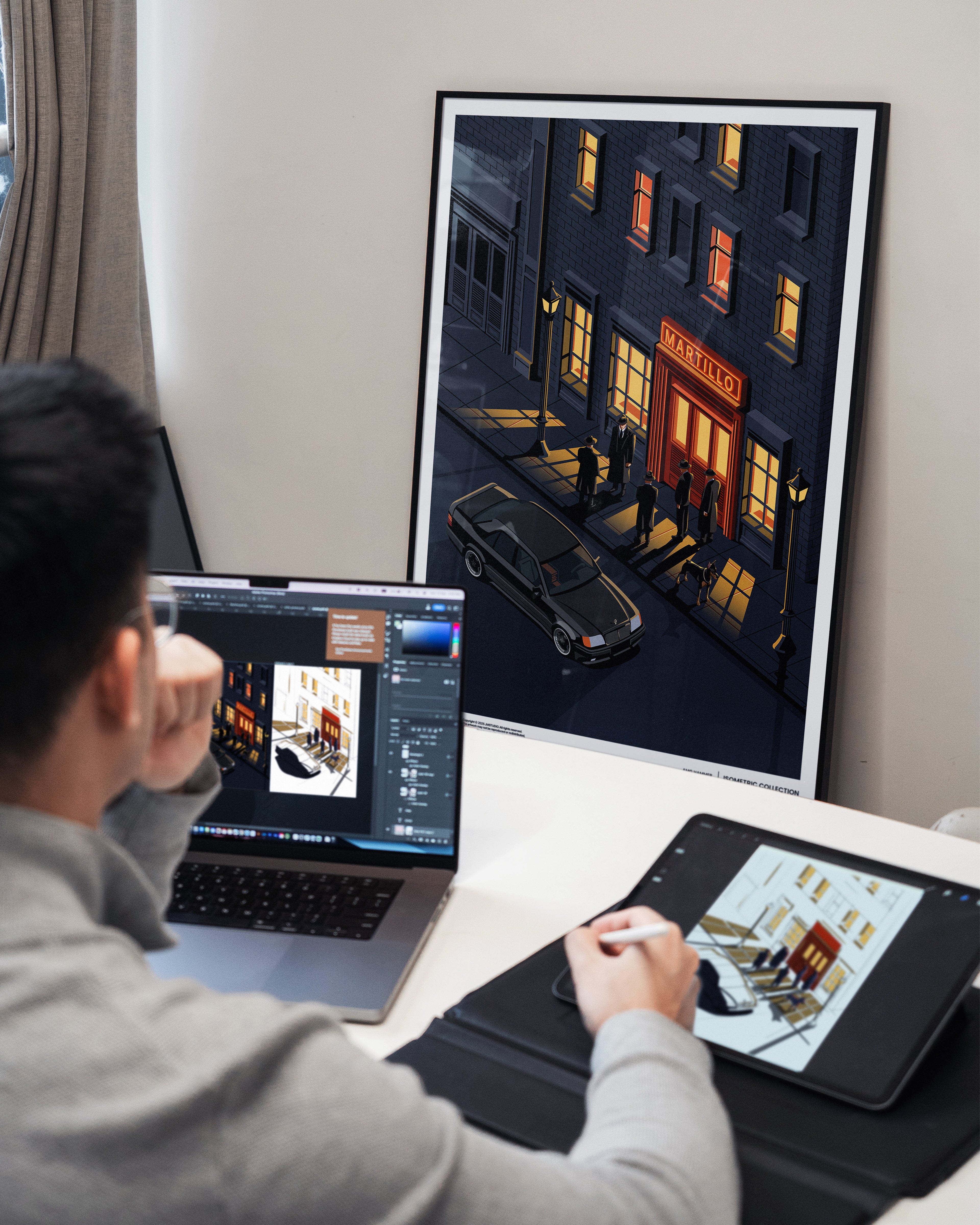 Inspired by the vibrant streets and iconic skyline, each piece of artwork is proudly designed in Hong Kong. Our collection captures the unique energy of the city, blending local charm with automotive classics.
