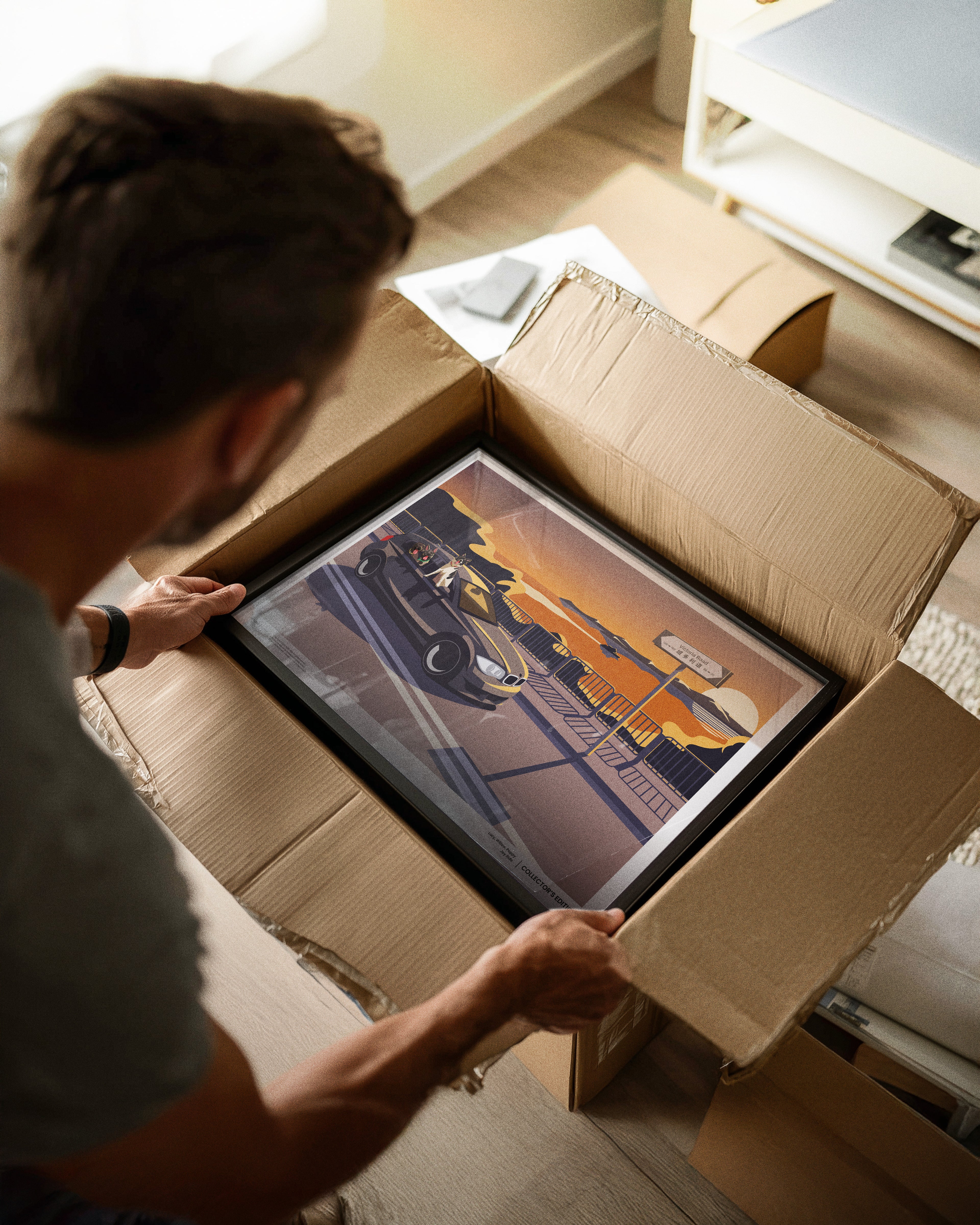 We apply the finishing touches. Upon your final approval, the piece is printed and framed. Ready for collection/delivery.